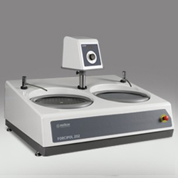 FORCIMAT 102 Testa porta campioni automatica a forza centrale/individuale.Testa porta campioni automatica a forza centrale/individuale controllata a PLC programmabile con controllo touch screen HMI 7 ” a colori. Sistema di caricamento della forza centrale e/o individuale regolabile pneumaticamente. Sostituzione rapida del porta campioni per forza centrale o individuale. Motore DC da 100 Watt, velocità di rotazione variabile tra 50-150 giri / min, con robusta colonna di montaggio in acciaio, segnale acustico di avvertimento, funzione automatica di pulizia e asciugatura del piatto con un solo pulsante. Capacità di comunicazione con le macchine FORCIPOL 102 e FORCIPOL 202. Completa di cavi a rete 220V., per Forcipol e tubo di collegamento aria. Manuale d’istruzione