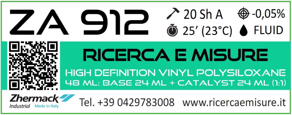 Una volta reticolato (25 minuti a 23°C), ZA912 raggiunge una durezza finale di 20 Shore A, combinando grande elasticità e resistenza alla lacerazione.