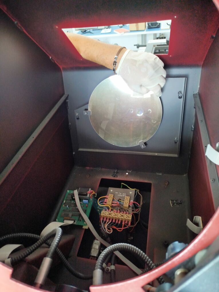 Manutenzione completa eseguita su un proiettore di profili Starrett HB350. L’attività ha previsto la pulizia e regolazione dei sistemi ottici e meccanici, la sostituzione della lampada di proiezione, il controllo dell’allineamento dell’immagine e un aggiornamento del sistema di movimentazione per migliorarne la fluidità e la precisione operativa: